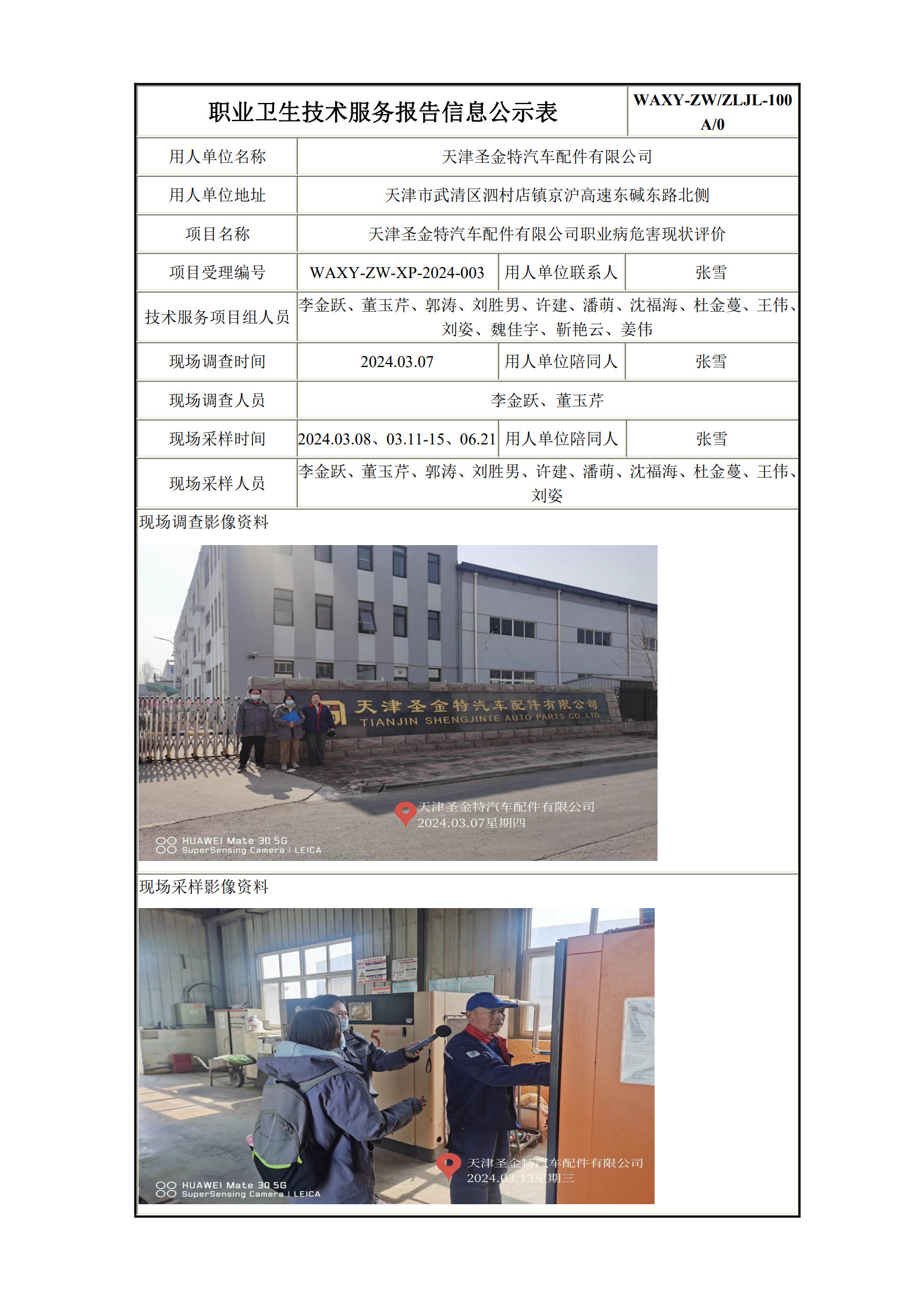 天津圣金特汽车配件有限公司职业病危害现状评价报告信息公示表