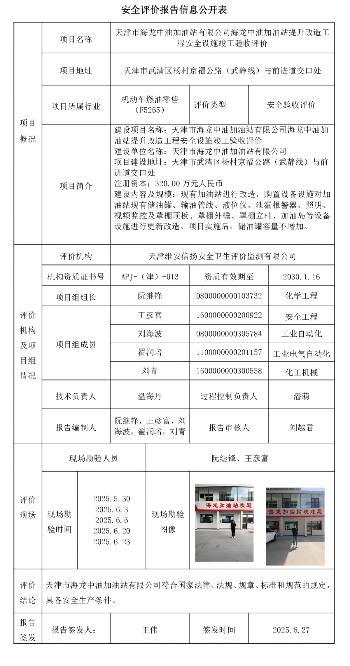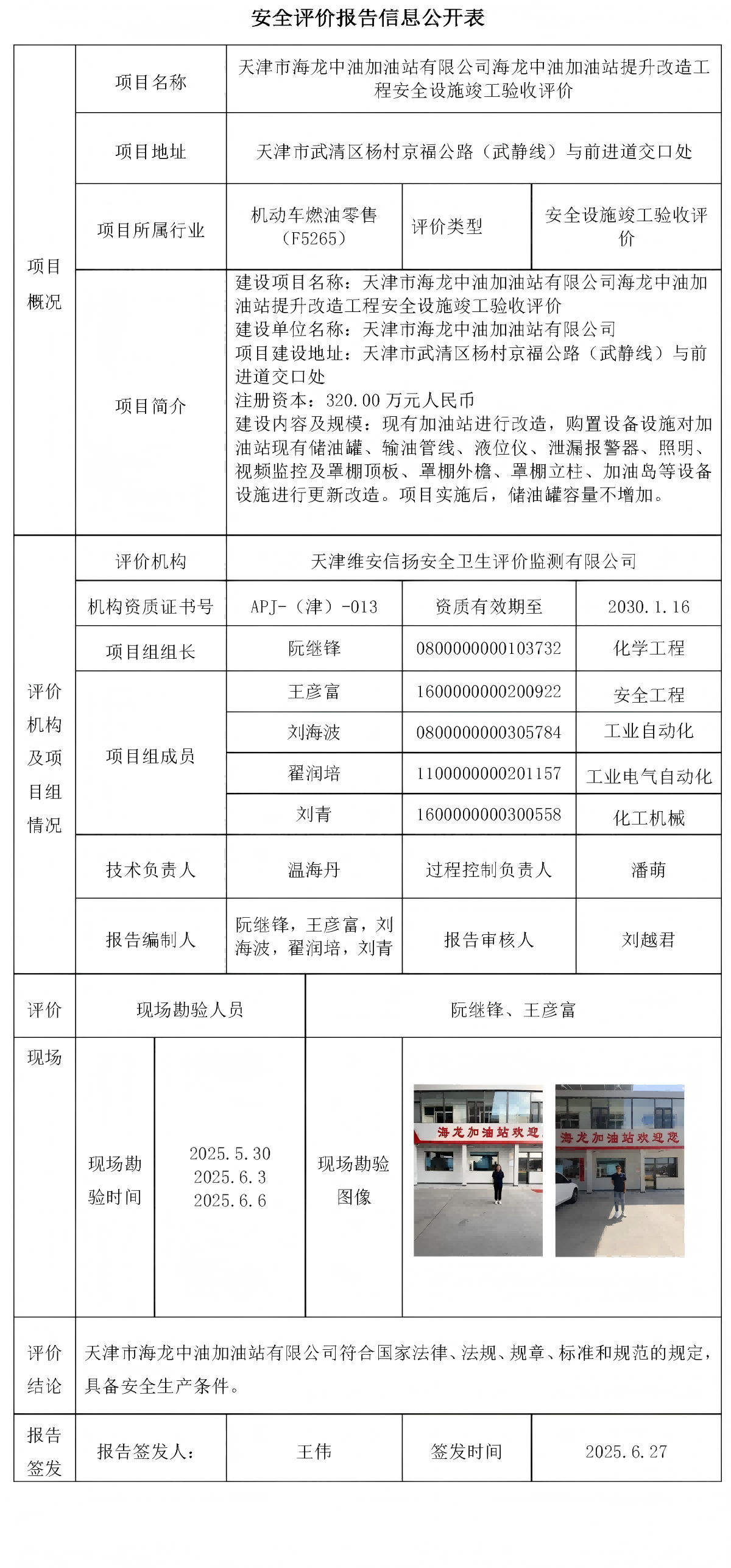 天津市海龙中油加油站有限公司海龙中油加油站提升改造工程安全设施竣工验收评价报告