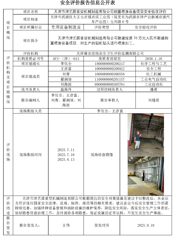 天津市津艺圆重型机械制造有限公司购置喷涂设备项目安全评价报告